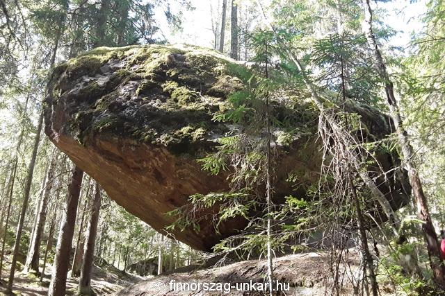 Bizonyos szemszögből elég ijesztőnek tűnik a gránittömb, de ha körbejárjuk, látszik, hogy biztosan áll a Kummakivi az alatta fekvő másik sziklán, amely minden bizonnyal még hatalmasabb a föld alatt.
